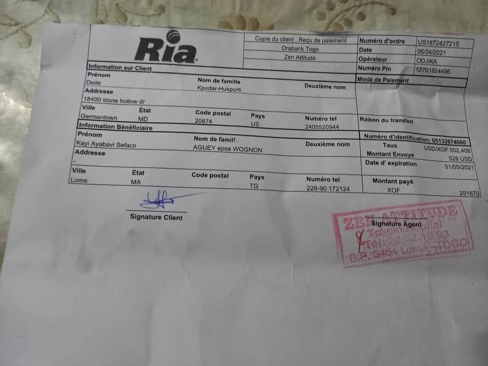 Une mobilisation de 291 671 FCFA via RIA de la Chorale « Notre Dame de tous les Peuples » des USA, à travers une personne de bonne volonté pour soutenir l’œuvre a été envoyé le 6 avril 2021. Ce fut une belle surprise.